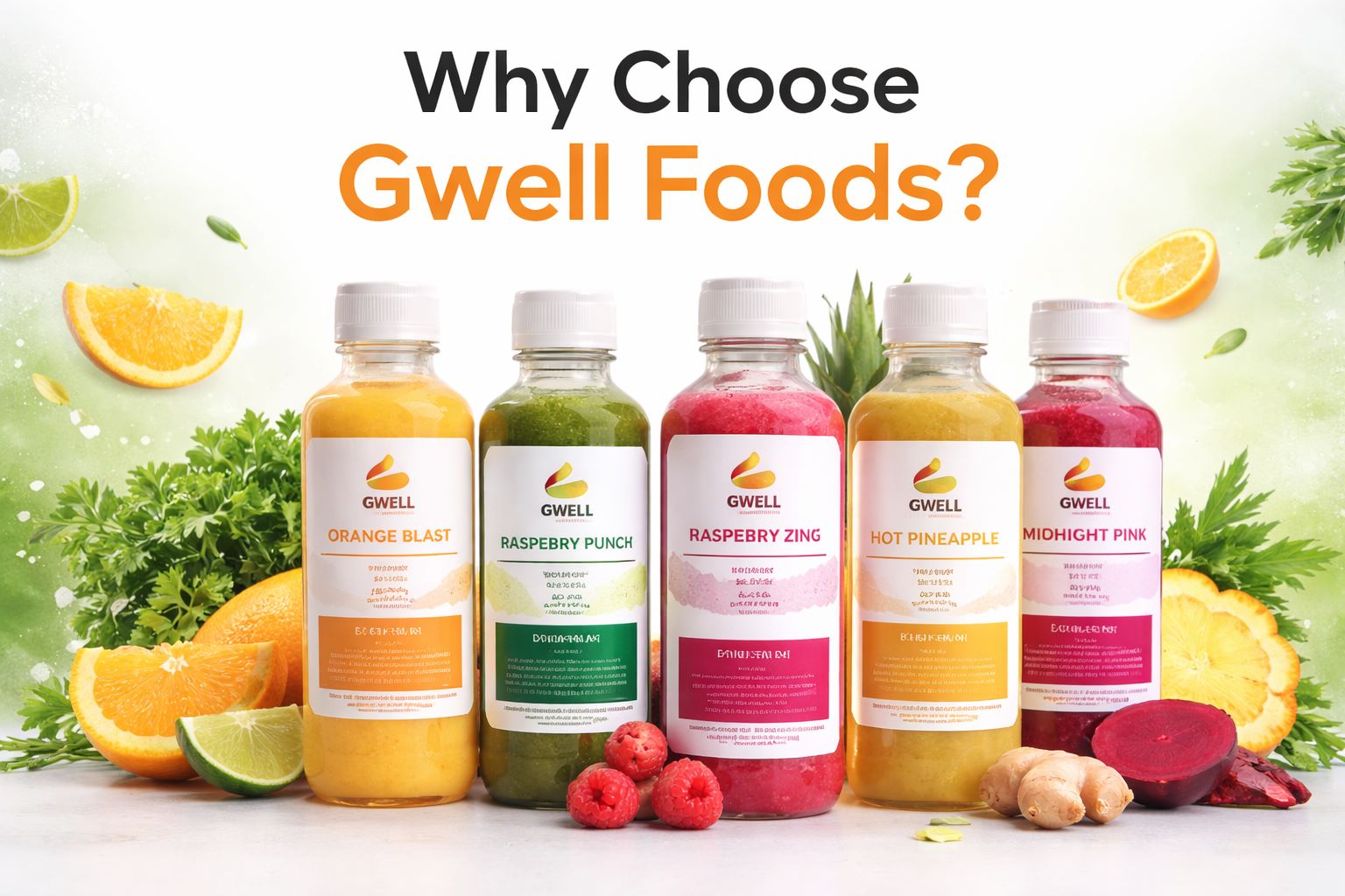 At Gwell Foods, we believe true wellness starts with what you put into your body. That’s why every bottle of our juice is made from 100% natural fruits and vegetables, carefully cold-pressed to preserve nutrients, flavor, and freshness—without added sugar, water, or preservatives.